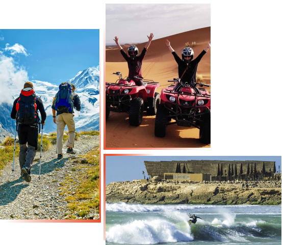 - Trekking dans l'Atlas, surf et sports nautiques, randonnées pédestres, escalade et canyoning